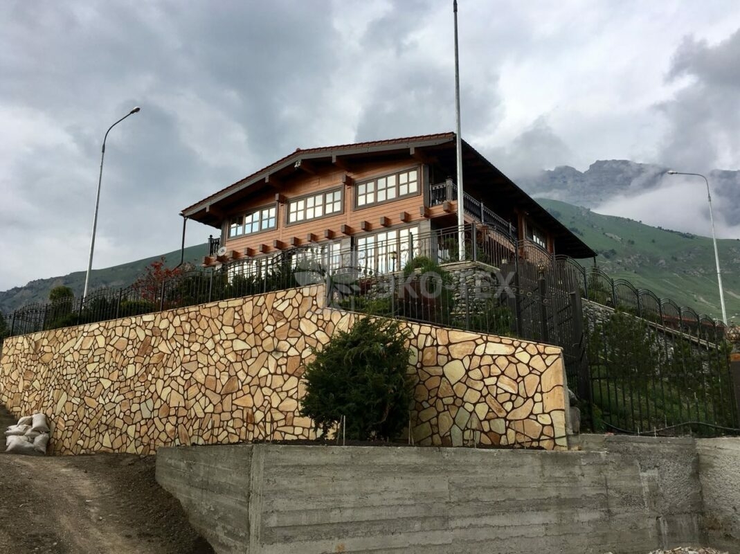 Двухэтажный дом с террасой и мансардой, материал оцилиндрованное бревно