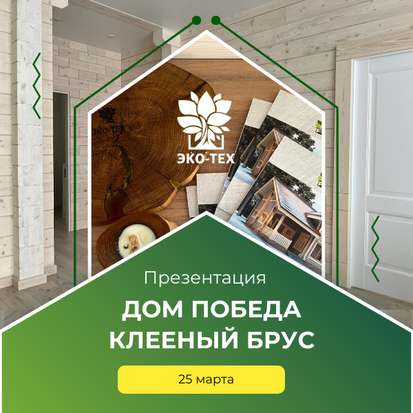 Дорогие друзья! Приглашаем всех желающих на презентацию нашего дома из клееного бруса «Победа» с обновленной внутренней отделкой, которая пройдет 25 марта.