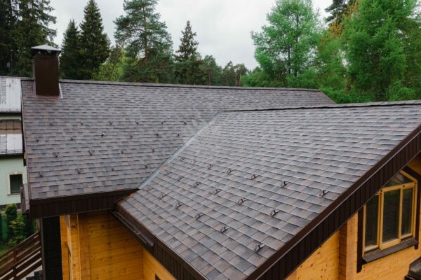 Второй этаж особняка имеет переменную этажность — высота потолков изменяется от двух до четырёх метров, крыша имеет сложный профиль. Кровельный материал, используемый нами для возведения кровли, обеспечивает прекрасную звукоизоляцию и защиту дома.
