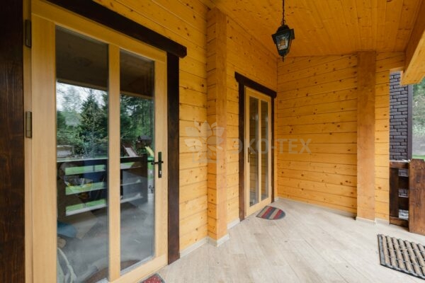 Отдельного внимания заслуживает большая терраса, которая в тёплое время года является естественным продолжением дома— здесь можно проводить свободное время, устраивать чаепития или проводить часы досуга, уединившись с любимой книгой.