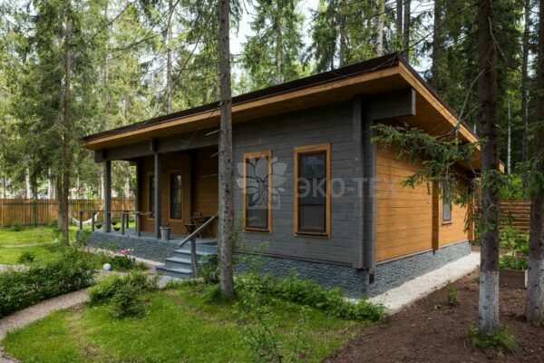 Одноэтажный уютный дом, построенный по проекту Троицк,  из клеёного бруса легко  может стать воплощением вашей мечты о собственном доме в реальность.