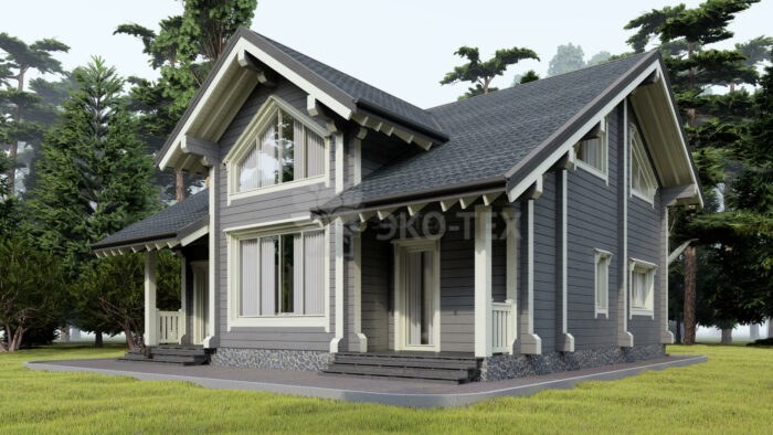 Двухэтажный дом с большой гостиной,материал клееный брус