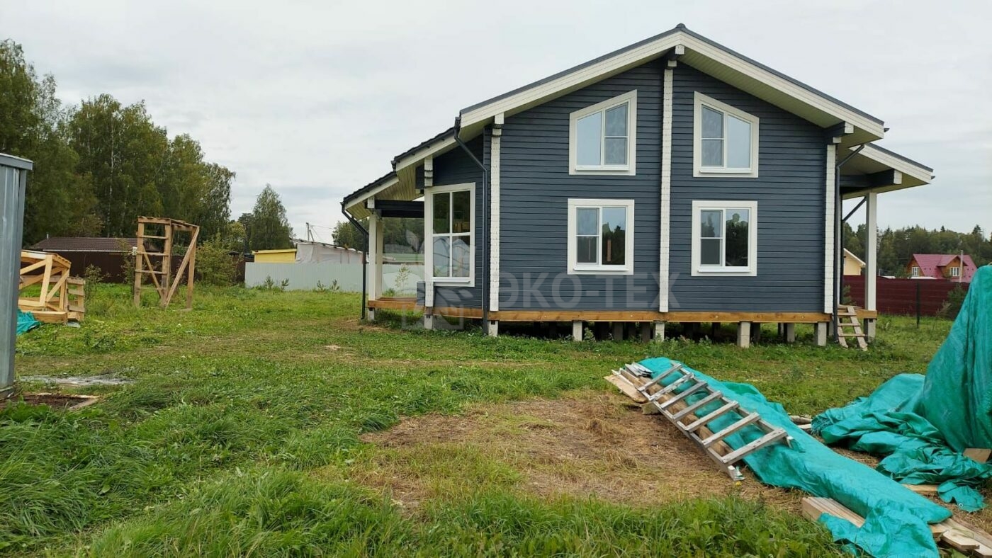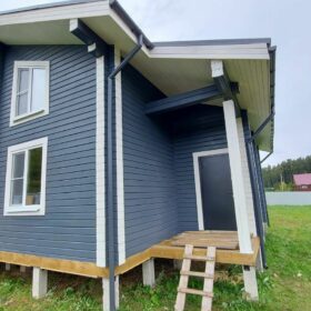 Двухэтажный дом с террасой, балконом, материал оцилиндрованное бревно
