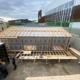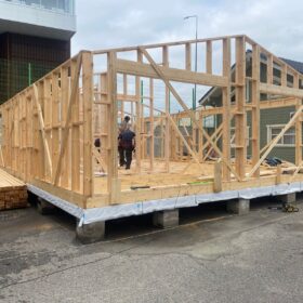 Сегодня мы подготовили для вас небольшой фотоотчёт о строительстве нового каркасного дома на нашей выставочной площадке. На этих снимках можно увидеть ключевые этапы работ: от возведения каркаса до оформления фасада.