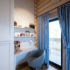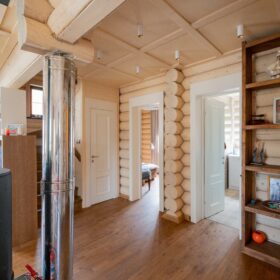 Одним из главных преимуществ деревянных домов является сохранение неповторимого рисунка древесины. В интерьере будут органично смотреться открытые деревянные балки и лестницы из дерева. Добавление элементов из дерева, таких как массивные полки, этажерки и стеллажи, а также использование дверных ручек и элементов декора таких поможет создать атмосферу тепла и единения с природой.