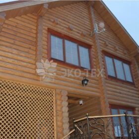 Двухэтажный дом с террасой и мансардой, материал оцилиндрованное бревно
