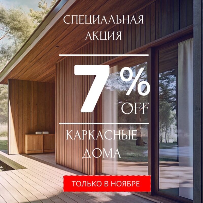 Только до конца месяца у вас есть шанс построить каркасный дом с выгодой — скидка 7% на заключение договора.