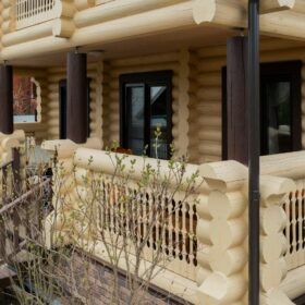 Двухэтажный дом из бревна с террасой