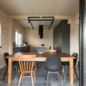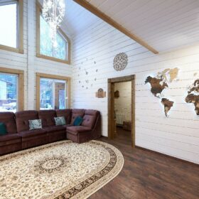 Баня с бассейном, гостиной, большой террасой из бревна.