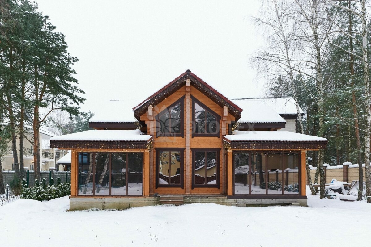 Двухэтажный дом с террасой, балконом, материал оцилиндрованное бревно